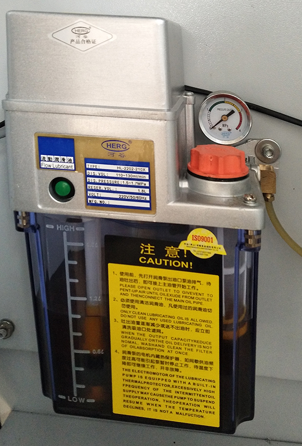 ◆采用日本河谷微電腦自動控制注油系統(tǒng),主動控制油量,保證導(dǎo)軌充分潤滑,減少浪費,保證機床導(dǎo)軌的使用壽命。