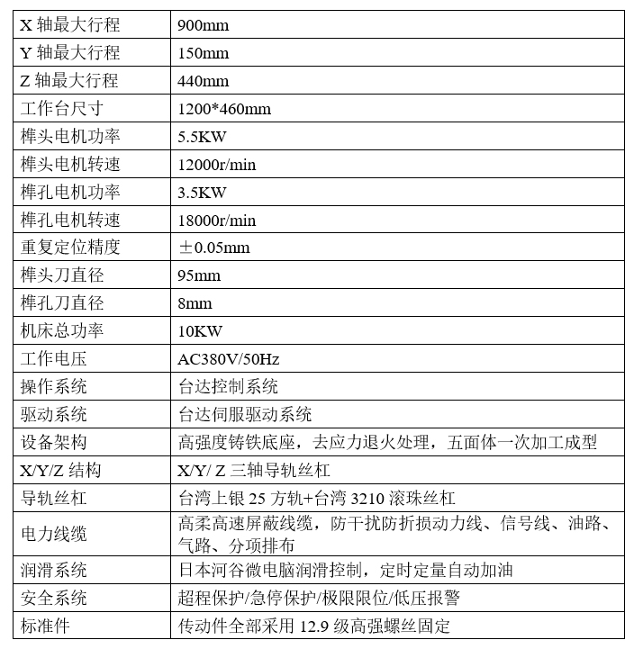 ◆榫頭電機采用5.5KW大功率高速電機,保證大吃刀高速加工。